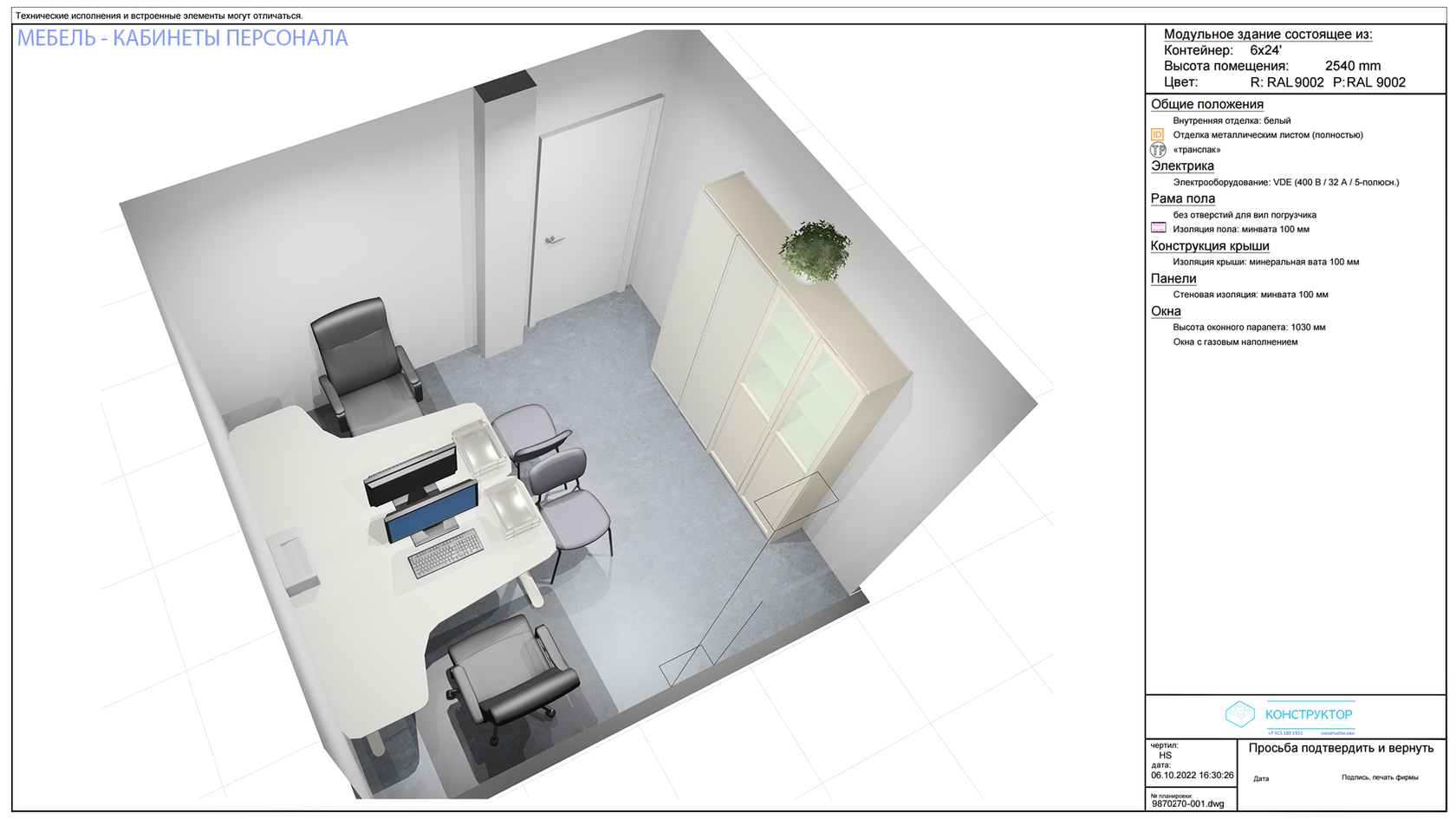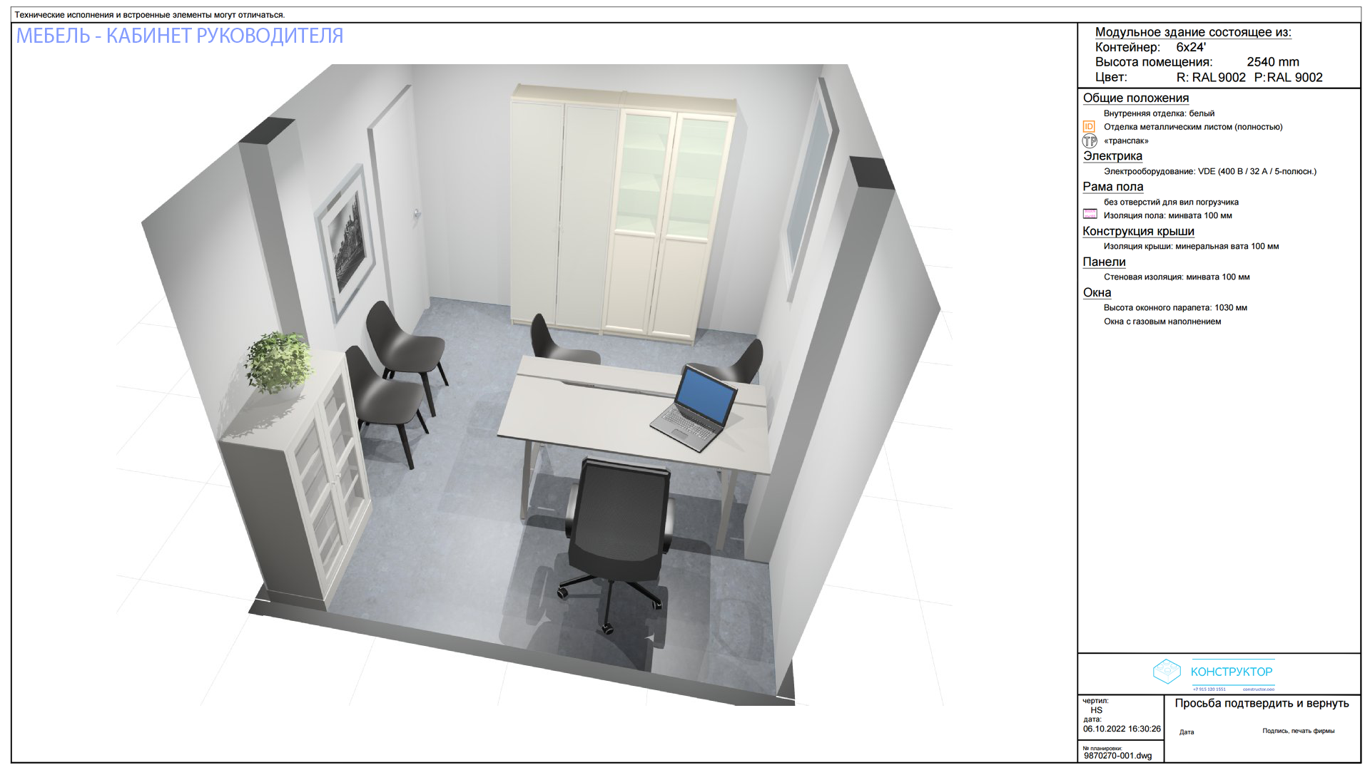 5 изолированных кабинетов для персонала + 1 кабинет руководителя 30м2